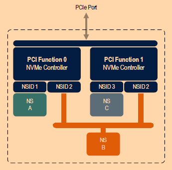 Port : Function = 1 : 2 Controller : NS = 1 : 2 (NS B는 shared NS) |