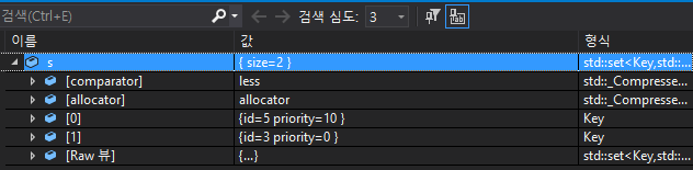 set은 key값을 가지는 node로 이루어진 red-black tree이다. node 간의 sort는 key값의 비교함수로 결정된다. (디폴트는 Key값에 대한 오름차순 정렬이다.)